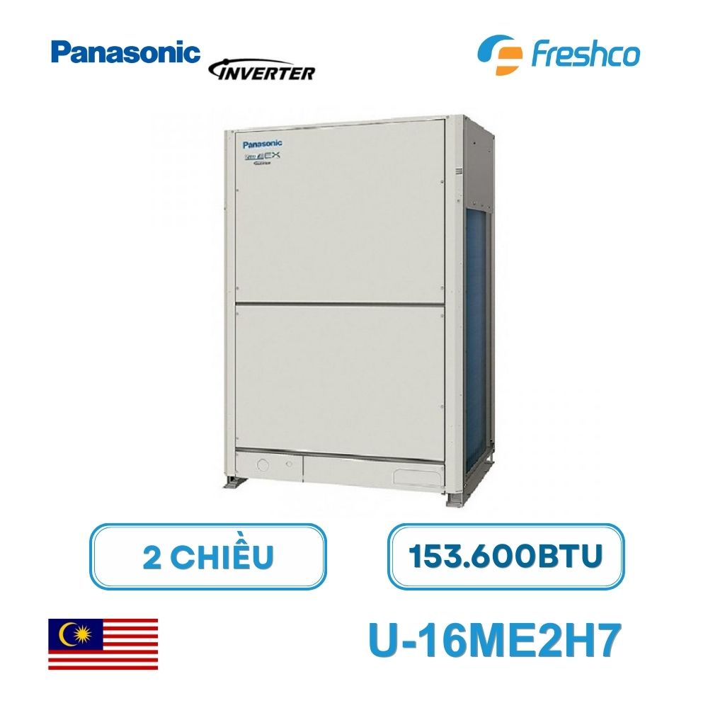 Panasonic U-18ME2H7 là dàn nóng điều hòa trung tâm thuộc hệ VRF FSV-EX ME2, dòng 2 chiều Inverter hiệu suất cao, được thiết kế cho các công trình yêu cầu khả năng làm mát và sưởi ấm mạnh mẽ, ổn định trong thời gian dài. Theo thông tin sản phẩm, model này có công suất làm lạnh 170,600BTU/h tương đương 50.0kW, công suất sưởi ấm 191,100BTU/h tương đương 56.0kW, sử dụng nguồn điện 3 pha và môi chất lạnh R410A.