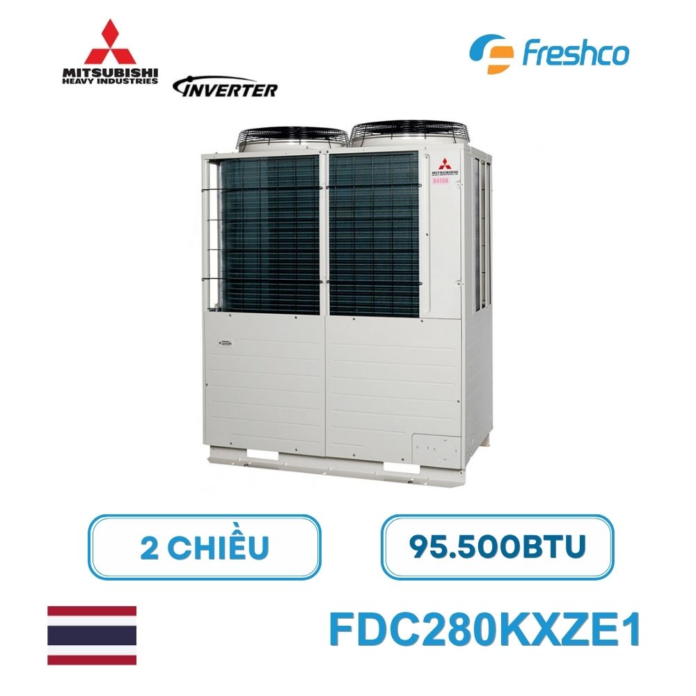 Sản phẩm được sản xuất theo tiêu chuẩn nghiêm ngặt của Mitsubishi Heavy Industries, sử dụng nguồn điện 3 pha 380–415V/50Hz, vận hành ổn định trong dải nhiệt độ ngoài trời rộng, rất phù hợp với khí hậu nóng ẩm tại Việt Nam. Nhờ tích hợp nhiều công nghệ mới như máy nén đa cổng xả, dàn trao đổi nhiệt tối ưu và điều khiển dầu thông minh, FDC280KXZE1 mang đến hiệu suất năng lượng cao, giảm chi phí điện năng và chi phí bảo trì dài hạn cho chủ đầu tư.