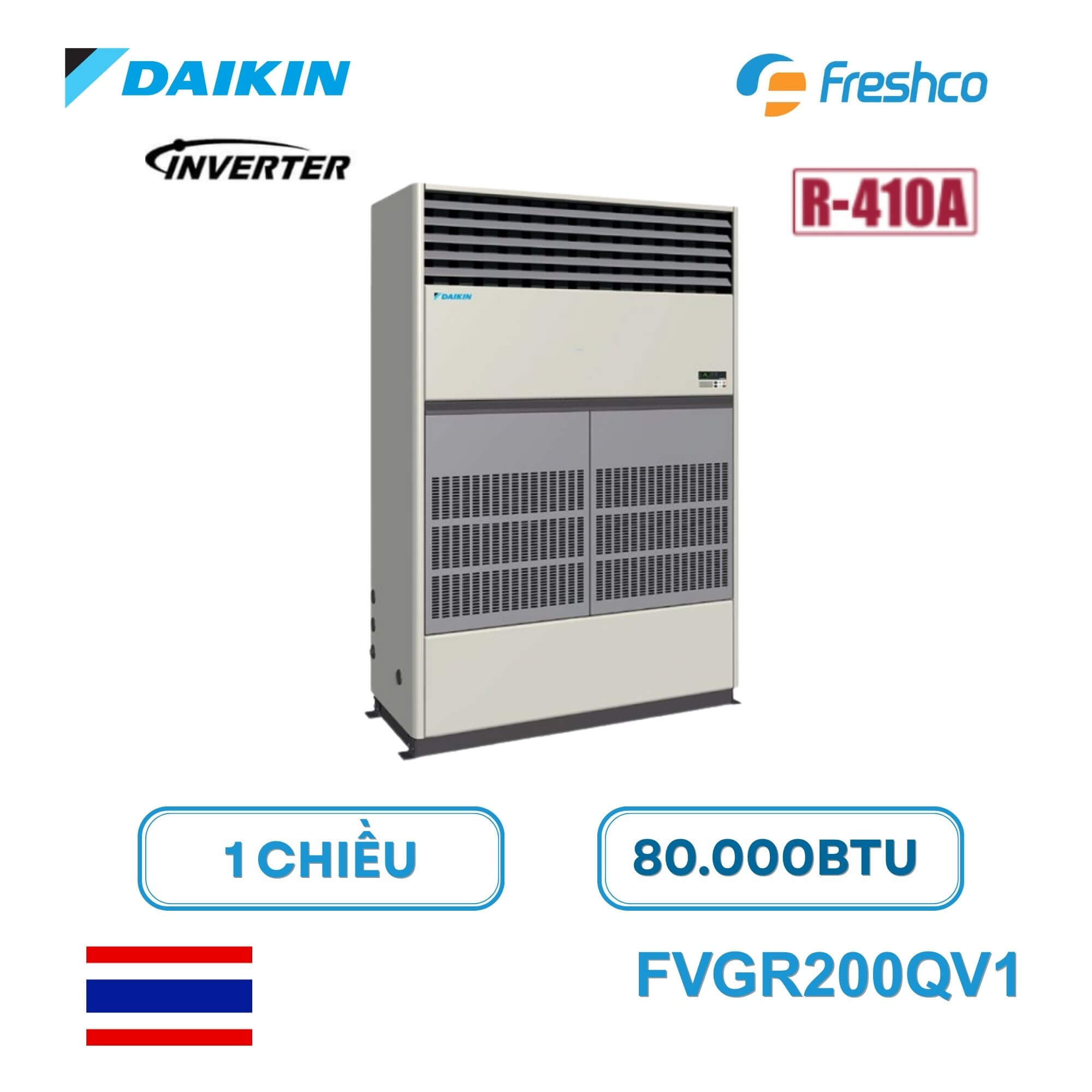 Daikin FVGR200QV1/RZUR200QY1 là dòng điều hòa tủ đứng công suất lớn được thiết kế dành riêng cho các không gian rộng như nhà xưởng, showroom, hội trường, trung tâm thương mại hoặc khu vực văn phòng có diện tích lớn. Với công suất làm lạnh lên đến 80.000 BTU, thiết bị mang lại khả năng làm mát nhanh, mạnh mẽ và ổn định.
